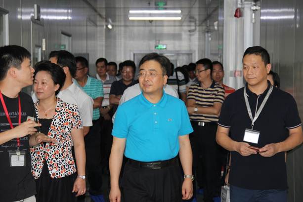 2015年10月26日下午,“臺(tái)山四大班子”到訪德力光電進(jìn)行調(diào)研工作。“臺(tái)山四大班子”在德力光電總經(jīng)理王非陪同下,先后參觀了外延片、芯片生產(chǎn)車(chē)間及展廳,王非總經(jīng)理進(jìn)行了詳細(xì)的講解。